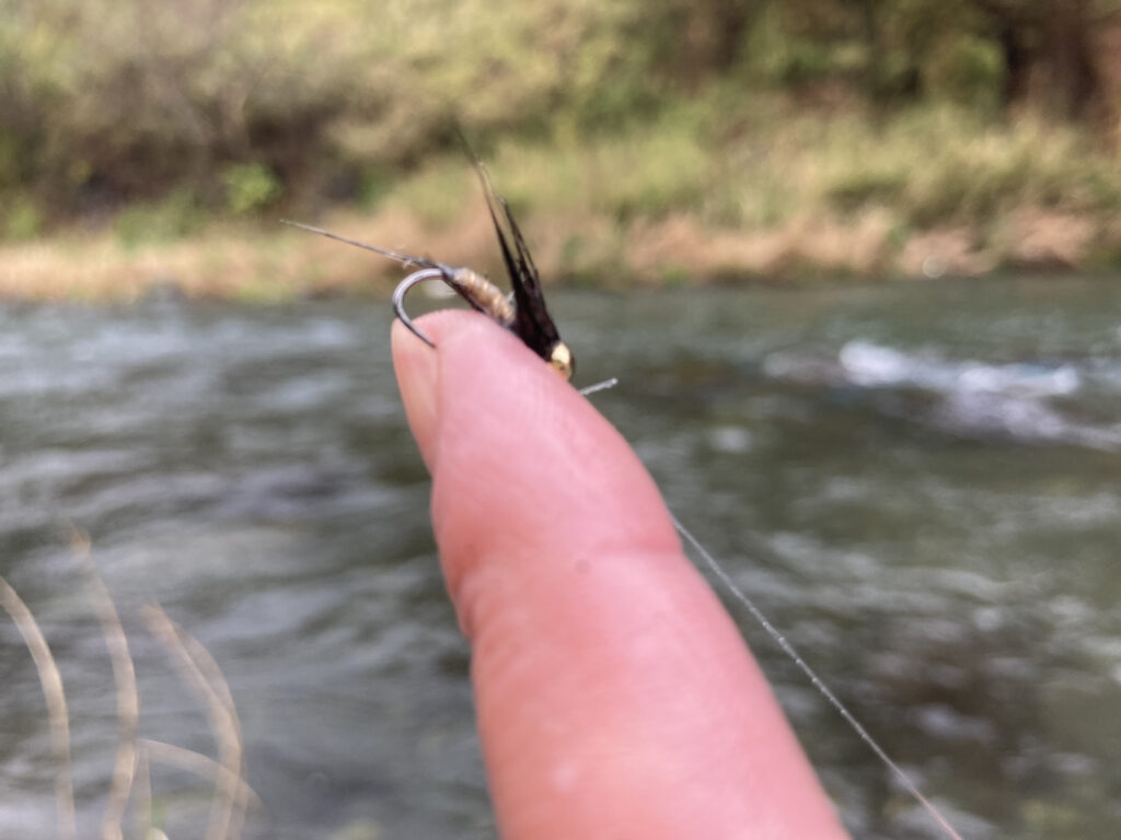 瀬下の長いたるみが気になり、そこを流しているとヒット