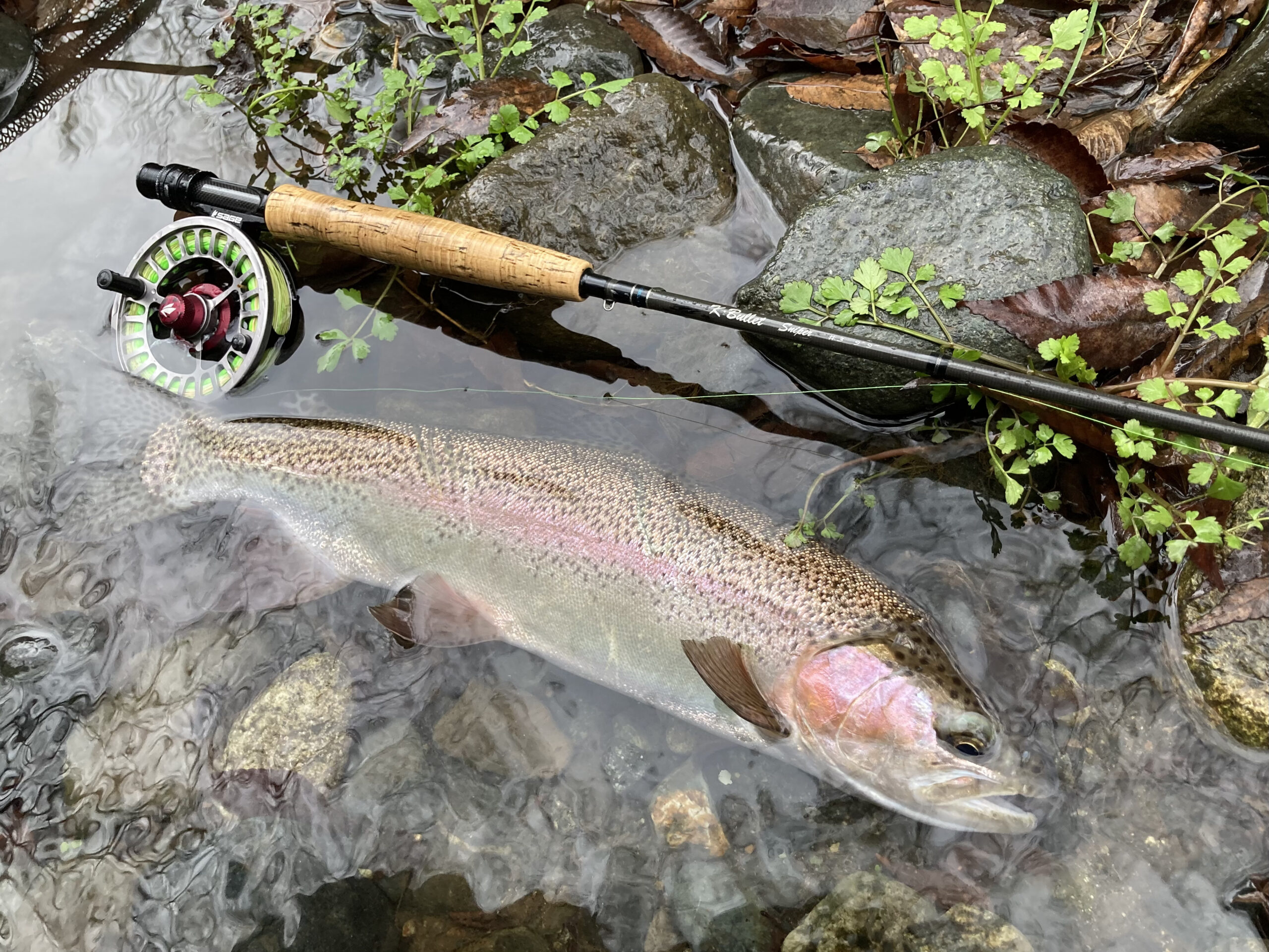 更に上流に進むと綺麗な鰭ピンニジマスがヒット
