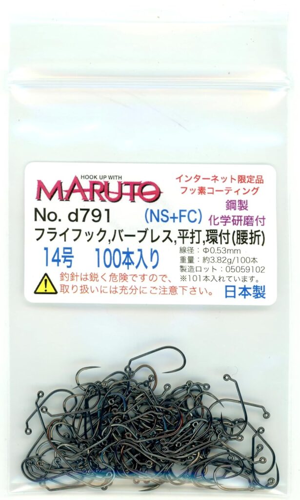●フック・・・MARUTO No.9644BL チヌリング・スレ1~2号、環付(外折)、平打(その他、TMC2488 #10~14)、ゲイプの広いもの
